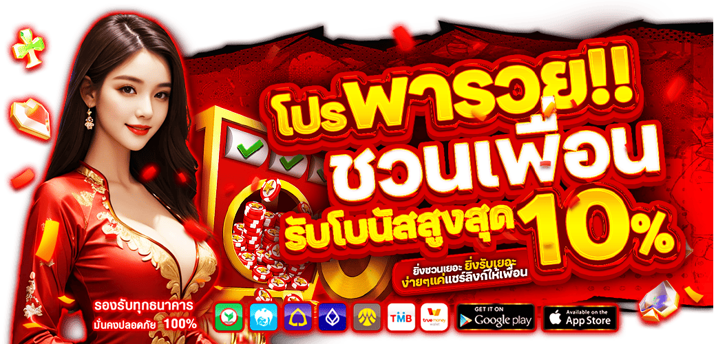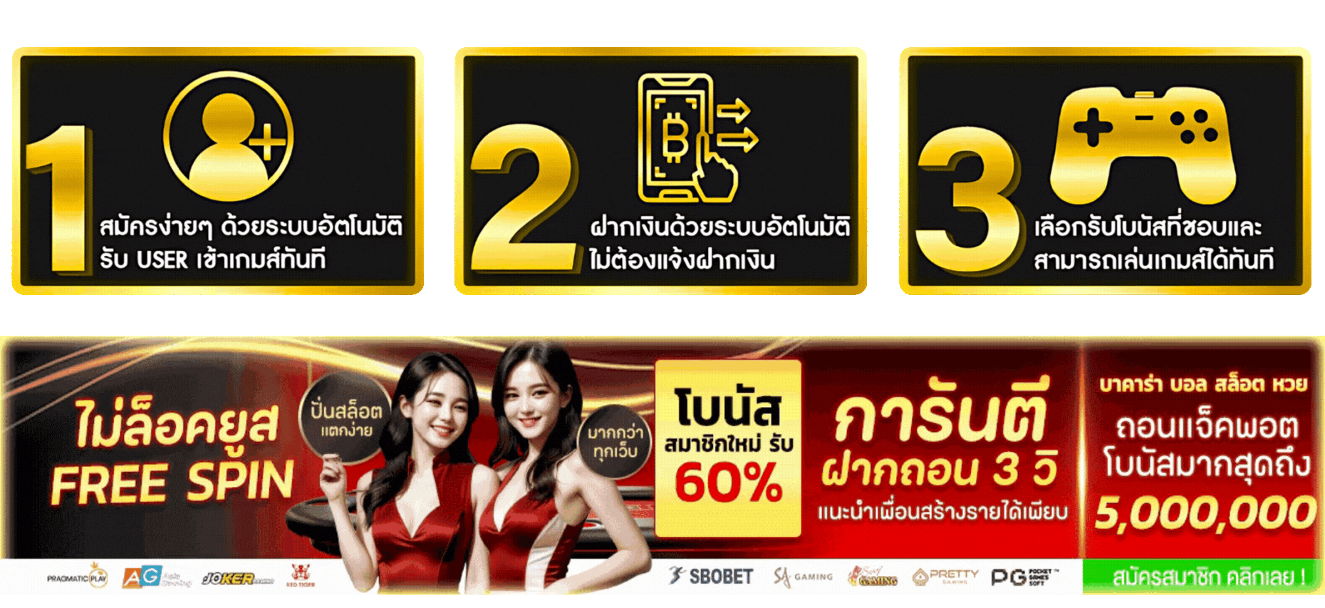 ตอบ : - โบนัสต้อนรับสมาชิกใหม่ 100% - คืนยอดเสีย 10% ทุกสัปดาห์ - แนะนำเพื่อนรับค่าคอมมิชชั่น 0.5% - กิจกรรมแจกเครดิตฟรีประจำเดือน - โบนัสวันเกิดพิเศษ